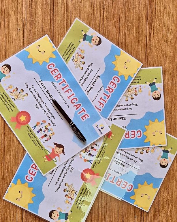 eTwinning projemiz "PLAY, DREAM AND BE HAPPY IN MY CHILD'S WORLD" kapsamında katılım gösteren sevgili öğrencilerimize proje sonu sertifikaları, değerli Okul Müdür yardımcımız Yusuf ATALAY tarafından takdim edildi.️️